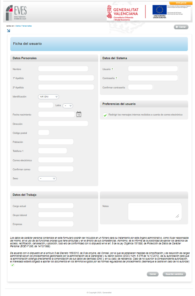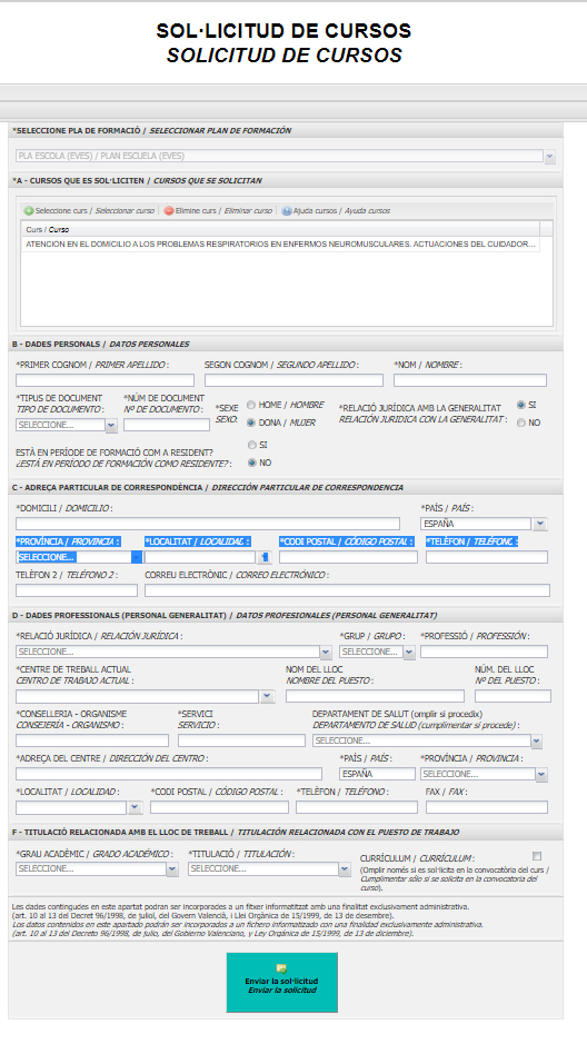3. Una vez registrado en el campus virtual de la EVES, podemos rellenar el formulario del curso desde AQUÍ.